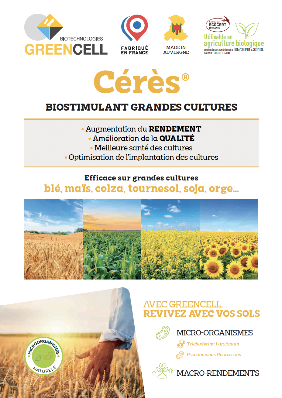 CÉRÈS® (biofertilisant) : optimise la vie microbienne des sols et renforce la nutrition des plantes.