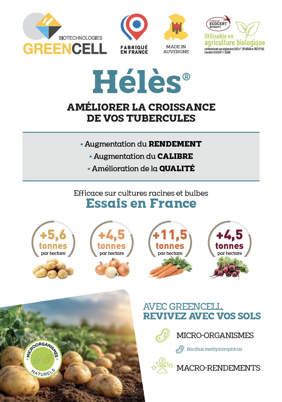 HÉLÈS® (biofertilisant) : améliore la structure des sols et favorise l’élongation racinaire.